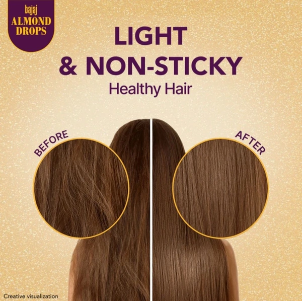 - Light and Non-Sticky: Say goodbye to greasy hair oils! Bajaj Almond Drops provides nourishment without weighing your hair down.