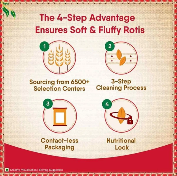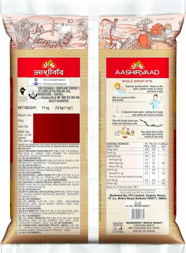 Aashirvad Atta, 5kg, is a premium quality whole wheat flour made from the finest wheat grains, ensuring that you get the best nutrition and taste in every bite. This atta is 100% whole wheat, retaining all the natural nutrients and fiber, making it a healthy choice for your family. It is high in dietary fiber, which aids digestion and promotes a healthy gut, and is packed with essential nutrients such as iron, calcium, and vitamins. Aashirvad Atta is free from preservatives, artificial colors, and flavors, ensuring that you get only the purest product. Hygienically processed and packed, this atta guarantees the highest standards of quality and cleanliness. Ideal for making a variety of Indian breads like chapatis, rotis, parathas, and puris, Aashirvad Atta ensures soft, fluffy, and delicious results every time. Its 5kg pack is designed to keep the flour fresh and is easy to handle and store, making it perfect for daily use. Trusted by customers for its consistent quality and superior taste, Aashirvad Atta is an essential staple for every kitchen.