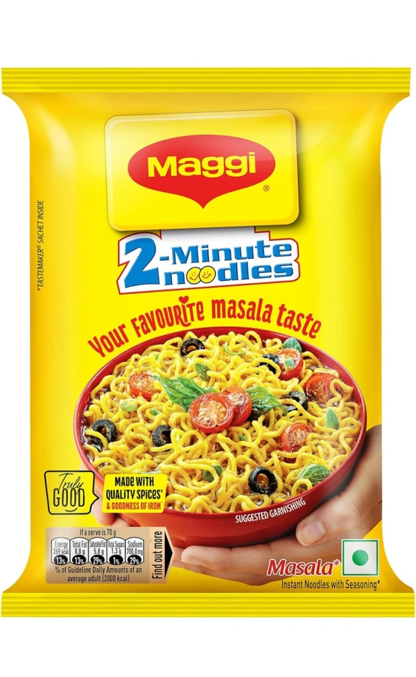 MAGGI 2-Minute Instant Noodles,Masala Noodles With Goodness Of Iron,Made With Choicest Quality Spices,Favourite Masala Taste, 70g Pouch.